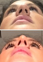 Often in conjunction with an over projected tip, there can be a noticeable addition to the tip of your nose in the form of a “hanging” or “drooping” columella as per above example on a previous patient. During surgery, this was shortened and along with tip reduction resulting in a much more petite and aesthetically pleasing tip area.