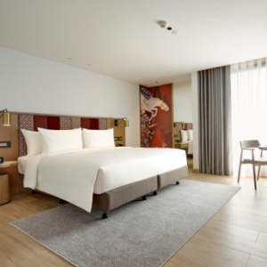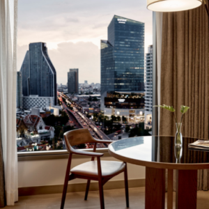 Relax in contemporary luxury at the beautiful Montien Hotel. Your 5-Star sanctuary is located in the heart of captivating Silom, minutes from Bangkok’s most loved shopping, dining and entertainment. Adorned with artwork from legendary Thai artist Paiboon Suwannakudt, your spacious 32 square metre room boasts city views, a premium king bed, luxurious soaking tub, complimentary wi-fi and streamed entertainment, 24-hour room service and more.