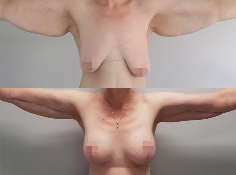 Pre surgery / 6 Months Post Surgery Procedures: Arm Lift, Breast Lift + Augmentation Hospital: Bangpakok9 International Hospital Surgeon: Dr Pornthep Surgery Details: Arm Lift + Breast Lift with Augmentation 275cc, Round Moderate Plus Profile, Under The...