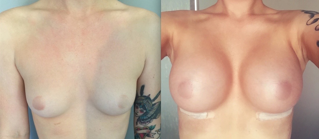 Surgery Details: 330cc, Tear Drop, Moderate Plus Profile, Dual Plane, Under the Breast Fold.