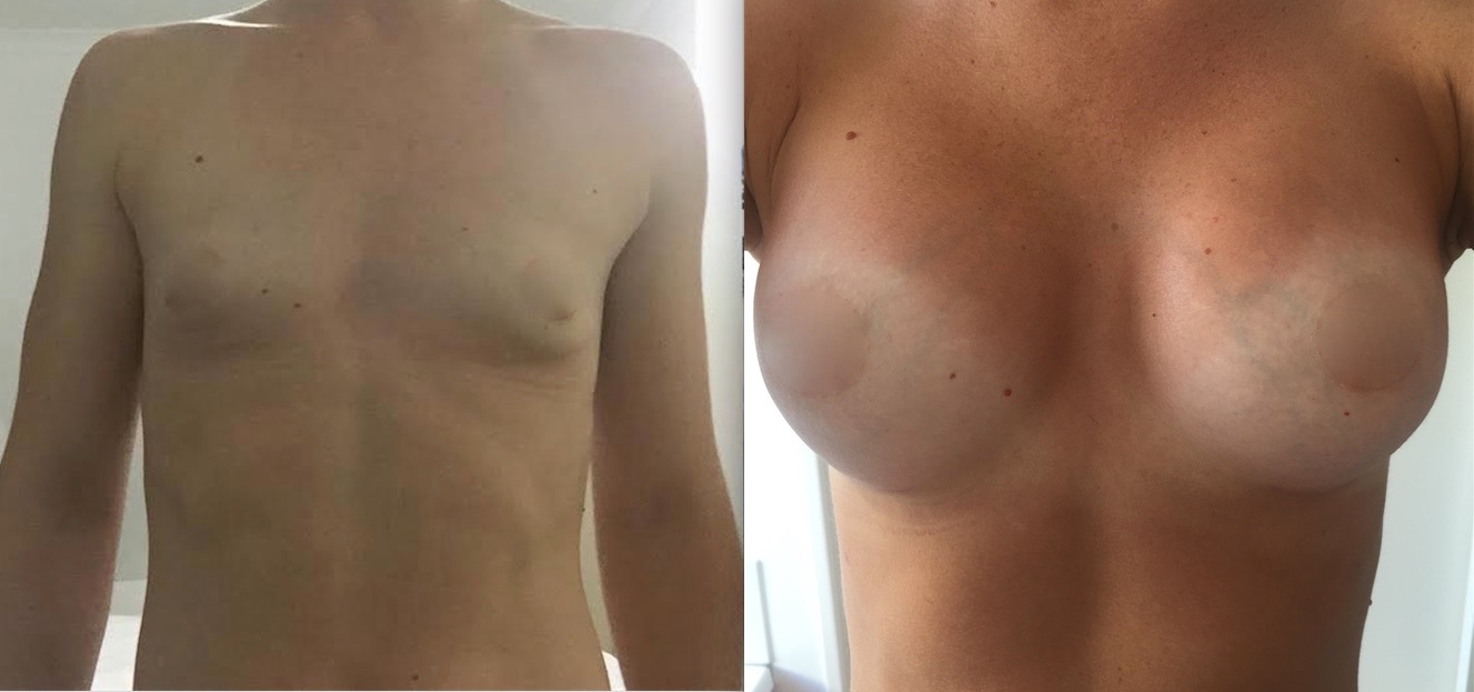 Surgery Details: 330cc, Teardrop implant, Moderate + profile, Dual Plane Placement, Under the breast fold incision