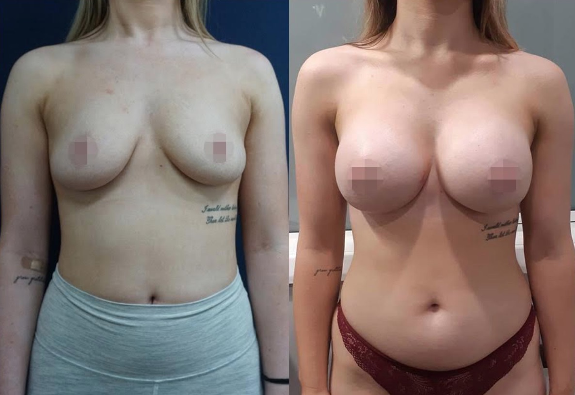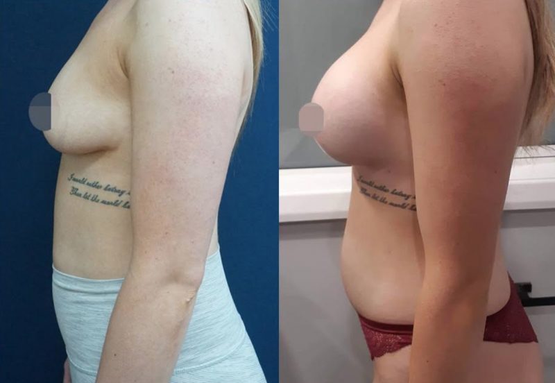 Procedure details: 350cc, round, high profile implants with under the muscle placement
